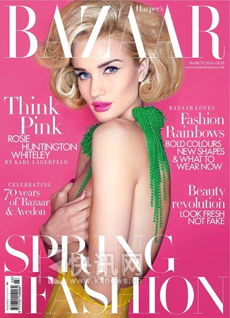 【环球网综合报道】据英国杂志《每日邮报》1月28日报道,好莱坞女星罗茜·汉丁顿·惠特莉为《时尚芭莎》春季时尚版拍摄封面,造型灵感来源于50年代的复古风格。
