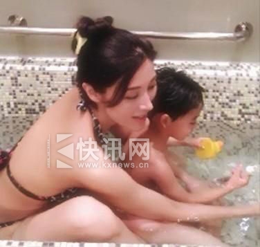 李嘉欣穿比基尼与儿子共浴 疑似丈夫掌镜