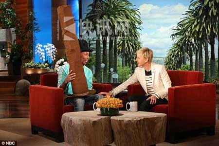 自从上次参加完格莱美颁奖典礼,法瑞尔便经常戴着那款维维安•韦斯特伍德帽字。《艾伦秀》主持人艾伦不禁调侃:“当你戴这顶帽子的时候,我的第一感觉是:这真是一顶很大的帽子啊。但是我现在已经渐渐习惯这种帽子了,所以我特地为你准备了一顶新帽子,我觉得应该也很适合你。”于是节目组人员拿出一顶超大型的维维安•韦斯特伍德帽,令法瑞尔哭笑不得。主持人不停调侃让他戴上帽子,法瑞尔十分配合,现场气氛十分愉悦。
