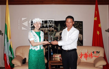 二人在针对晚会进行相应探讨之后,对未来中国文化“走出去”的规划也进行了畅想。文化无国界,通过艺术形式的交流与展示将推进外国友人对我国文化的认同。郭霁红更指出,中国艺术文化在进行展示的时候,与当地特色文化景观相结合将助力本土观众的认同感。郭霁红导演开创性领导的“山水景观晚会”主旨就是利用本地已有景观进行舞美设计,将自然与人文巧妙融合。驻缅政务参赞陈辰也指出缅甸国家的自然、人文景观比比皆是,将是可以利用的重要资源。谈话最后,郭霁红导演将中央电视台水晶模型赠送给中国驻缅甸大使馆,留以纪念。