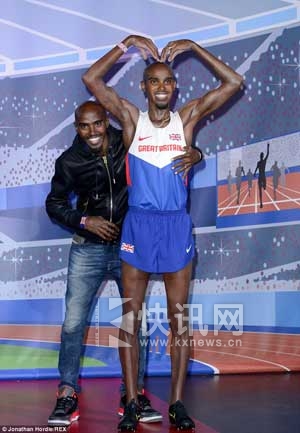 【环球网综合报道】据 英国 《每日邮报》4月14日报道,因出色的体育成绩而家喻户晓的英国长跑健将莫• 法拉赫 (Mo Farah),周一在杜莎夫人蜡像馆向媒体展示了自己的两座蜡像,它们还分别穿着不同的衣服。