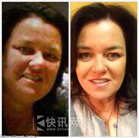 【环球网综合报道】 据外媒4月17日报道,于2012年饱受心脏病折磨 美国 著名脱口秀主持人罗茜•奥唐纳(Rosie O'Donnell)发誓要改变自己的生活状态。自于去年7月接受胃套扎手术后,近日这位52岁的主持人欣喜地宣布自己已经从原先的230磅瘦到了现在的180磅,并且上传了自己两年前和现在照片的对比图并写道:“足足瘦了有50磅,我的减肥终于有了效果!”