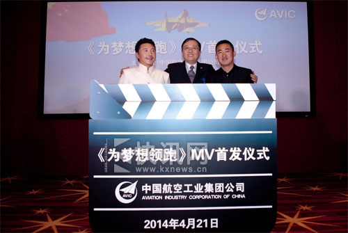 为激发国人的爱国热情,吸引广大青少年投身航母舰载机飞行事业,实现伟大 中国 梦,在中国人民解放军海军成立65周年纪念日前夕,中国航空工业集团公司(简称“中航工业”)特别制作了国内首部以航母舰载机为题材的公益片——《为梦想领跑》。该片于4月21日在北京举行了发布仪式。中航工业新闻发言人、特级专务、办公厅主任朱宏斌,公益片总导演刘晓世和著名民族歌唱家容中尔甲等共同为公益片首映揭幕。
