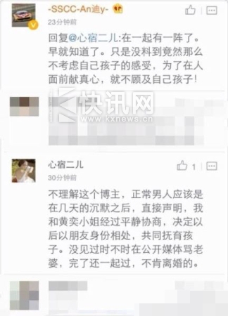 6月14日,有网友发 称:“一个巴掌拍不响确实可以解释,但是霍思燕也骂,前夫也骂,现在的老公也骂,年轻的时候找干爹,这次开房。你不能说 这人没问题。其次,就算过不下去,婚姻中出轨开房就是不道德的。因为你还是别人的妻子。可是这黄奕确实不厚道地开了房。不能说不无耻。”