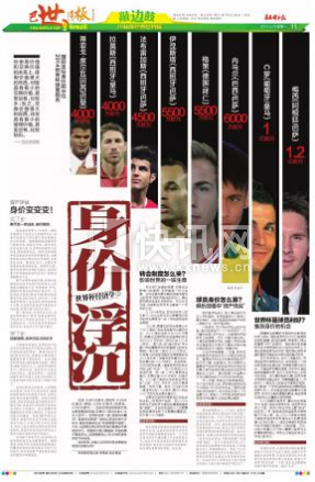 1999年,最著名的转会是 意大利 “900亿里拉”先生维埃里 [微博] 转会 国际米兰 [微博] 。900亿里拉当时约合5000万美元,换算成当年刚刚开始挂牌的欧元大约2800万欧元(1欧元约合8.35元人民币)。第二年,在“世纪转会”中大噪一时的葡萄牙中场球星菲戈的转会费就一举达到了接近6000万欧元。引进菲戈的西班牙皇家马德里 [微博] 随后在2001年引进了 法国 传奇球星齐达内,转会费达到7500万欧元。此后数年,齐达内的转会费一直是世界足坛转会市场上的“标王”。这一纪录在2009年被打破。那一年,C罗从曼联 [微博] [微博] 转会皇马,花费后者9600万欧元,创造纪录。2013年又是欧洲足球转会市场的“大年”,贝尔、卡瓦尼、内马尔再度推高了市场行情。其中,贝尔的行市一度被传达到1.8亿欧元,最终公布的9100万欧元转会费也属天价。