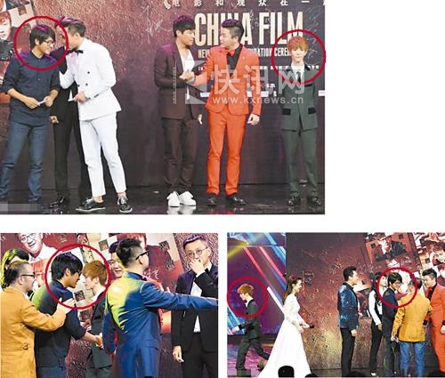 郭敬明和韩寒此前一直被网友“绑定”和比较,两人的新电影也将相继上映。有心人拍摄了一组现场照片,只见郭敬明和韩寒虽然在活动中相继登台,介绍自己和自己的作品,但是两人没有交集。在11位导演共同上台签名合影的环节,韩寒和郭敬明之间还是相隔数人,同台却不会面。