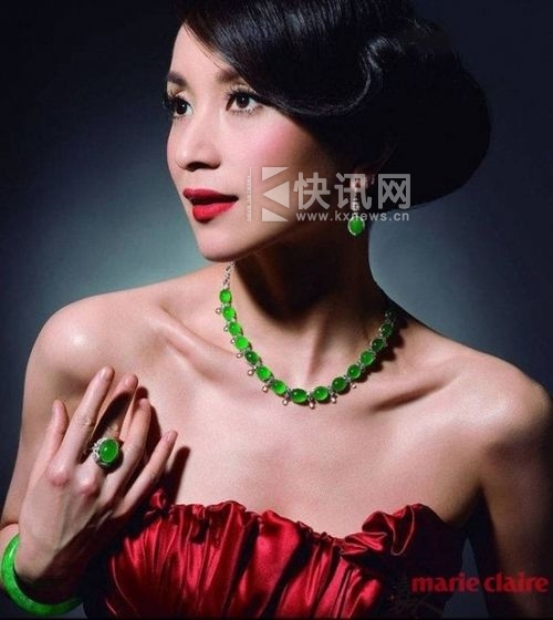 温婉优雅绽放东方女性之美,翡翠是汤灿的着装必需品。