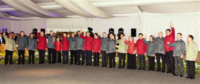2009年,新加坡APEC会议,成员领导人身着新加坡特色服装合影。