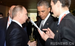 俄新网配图:俄总统新闻秘书佩斯科夫表示,普京与奥巴马在北京有过几次交谈,时间很短,但涉及到双边关系等议题。