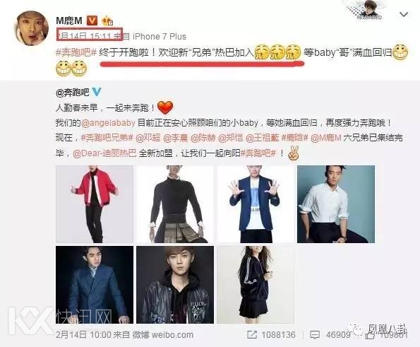 当时,所有跑男团的成员齐刷刷发微博表示了欢迎和期待↓