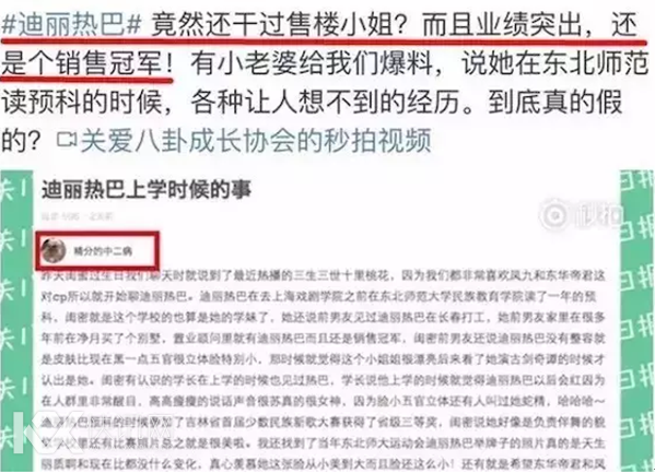 有微博大号就爆尿过迪丽热巴曾干过售楼小姐,并且还是个销售冠军!