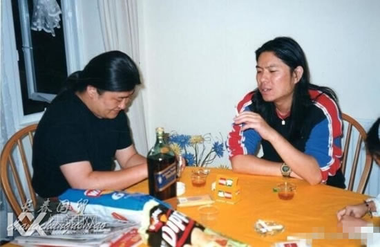 只见照片里,高晓松抽着烟,桌上拍着一瓶酒,与刘欢相谈甚欢。值得一提的是,那时的高晓松还是“瘦瘦哒”,而刘欢也蓄着一头乌黑亮丽的秀发。