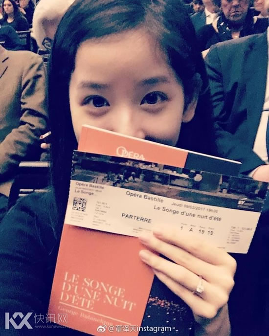 凤凰网娱乐讯 3月10日,有网友在网上晒出一张章泽天的近照,并配文表示奶茶妹妹正在巴黎观看莎士比亚的《仲夏夜之梦》。照片中,她用门票挡住自己的半张脸,一双水灵灵的大眼睛格外动人,手上戴着超大钻戒实力吸睛。