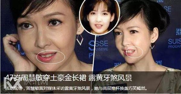 但微整与否都不是问题的关键,牙齿黄才是周慧敏被嘲的根源。确实,从照片来看,玉女的牙并不是白亮型的