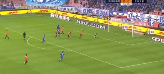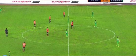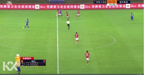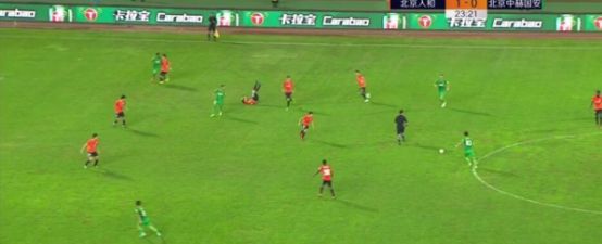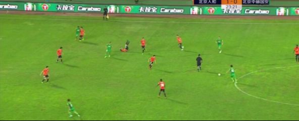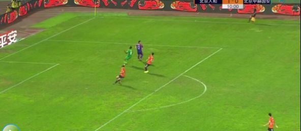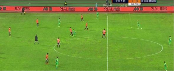 色彩过于丰富的配色,在场边广告上简直是场灾难,不仅整体眼花缭乱,而且白底红字的信息展示又最大限度地降低观众识别可能,真不知道这个app是不是中超公司亲生的。