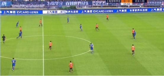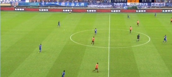 一般常见于开场、开球、进球庆祝、喝水时间等;可以展示球场边线侧10-12块led屏,位于电视屏幕居中位置,但led区域在电视屏幕的面积占比较低,只有5%左右,因此基本上很难识别到场边广告的内容,并不是一个好的场边广告曝光机位。
