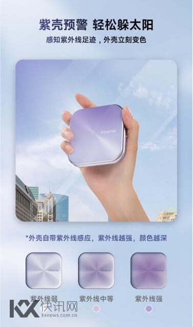 “林允同款”UV小紫镜,其外壳遇紫外线变色的创新设计让人眼前一亮。这一设计灵感源自自然界的自我保护机制,让用户只需一眼,即可轻松辨别当前环境的紫外线强度,从而有效避开紫外线伤害。同时,镜子内置的环境检测功能,能够实时监测并显示特定位置的紫外线指数及空气湿度,为用户提供精准的防晒与补水建议,让肌肤在任何环境下都能得到最佳呵护。