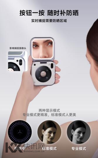 更令人惊喜的是,小紫镜还配备了先进的UV检测功能。用户涂抹防晒霜后,通过镜子即可直观看到防晒霜的涂抹状态及漏涂区域,确保防晒无死角。同样,卸防晒时,也能快速识别未卸干净的地方,让防晒管理更加科学高效。
