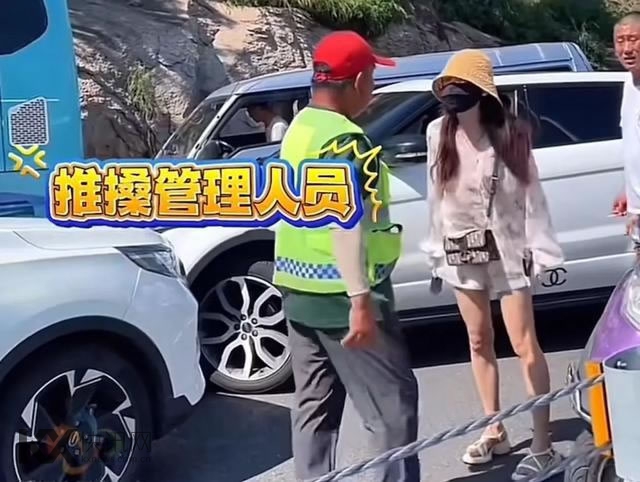 这女的还跟景区的工作人员杠上咯,推搡责怪周围的人,还硬讲自己逆行插队是应该的,打人也没错,打完就开车跑咯。