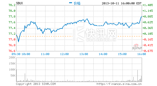 截至周一(美国东部时间10月21日16时)美股收盘,身陷“暴利门”的星巴克股价逆势上涨0.19%,收盘报79.46美元,创下历史新高,显示出华尔街依然看好该公司前景。