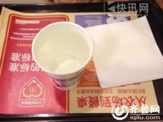 李先生告诉齐鲁网记者,“我问服务员可否提供热水,服务员说可以提供热水,但不能提供杯子。如果想要,需要再花8块5买杯饮料。”随后李先生想单独购买一个杯子,但被服务员告知,“纸杯不能单独卖,必须和饮料一起卖,按照成品饮料买。”