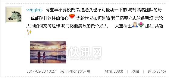 最近嫣然天使基金卷入是非风波,爆料人周筱赟从去年开始连续发出长 指其有黑幕,更将矛头对准李亚鹏,认为其利用慈善为自己谋暴利。前几日,周筱赟再发 指嫣然侵吞明星和企业捐款,对此,嫣然亦再做回应,称周筱赟传播不实消息,重伤“嫣然”和李亚鹏。此前,王菲就多次在 支持前夫和嫣然天使基金,今日(20日),她 再发支持,写下:“有些事不要说做,就连念头也不可能动一下的,我对嫣然团队的每一位都深具这样的信心。无论世界如何黑暗,我们仍要立志做盏明灯,无论人间如何充满险诈,我们仍要勇敢的做个好人。”