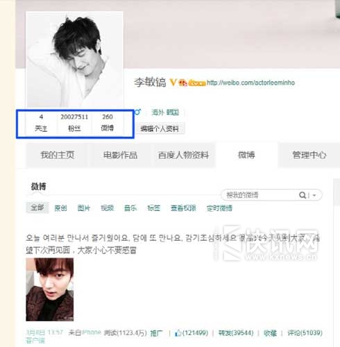 【环球网报道 记者 陈薇】据韩国媒体3月10日报道,韩流明星李敏镐在中国最大社交网站 粉丝突破了两千万。李敏镐所属经纪公司9日表示:“李敏镐在中国 粉丝以8日下午为准,已经超过了2000万人。这也是韩国演员首次取得的壮举。”