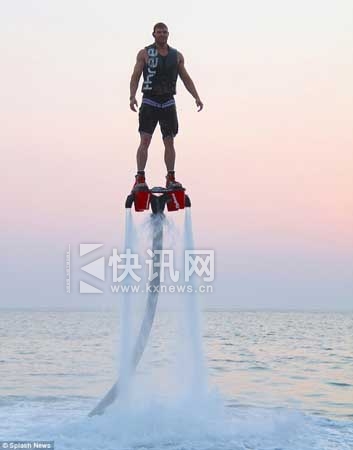 水上飞板是一种绑在脚上的水上喷气发动机组件,水上飞板员站在一块由软管连接到船舶的板上,他们都穿着一种特制的靴子,水在压力下可将飞板员喷出到15米的高空,飞板员也可踩着飞板潜入水中。鲁兹尝试了好多个困难的动作,这种水上运动对他来说毫无压力,全都完美完成。同天,动作片演员尚格•云顿 (Jean-Claude Van Damme)也出现在尼基海滩度假村