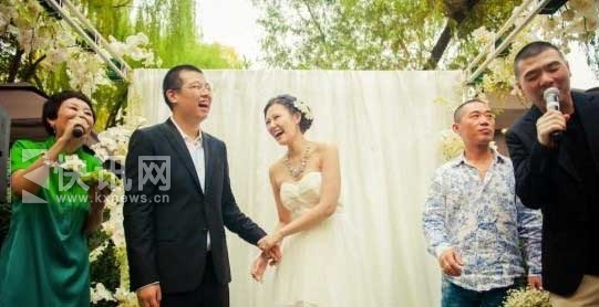 知名作家 王朔 爱女王咪去年9月大婚。3月13日,王朔女儿王咪晒出去年的婚礼照片。照片中,新娘和新郎手拉手,笑的非常的开心,而照片中最大的亮点是 冯小刚 ,他手拿话筒担为好友的女儿证婚,逗得大家都开心大笑。而据悉,王咪婚礼上却没有出现父亲王朔的身影。
