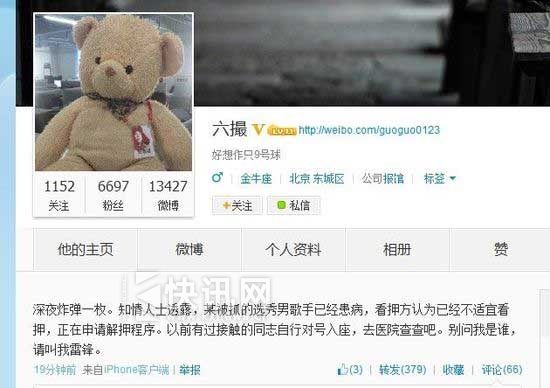 27日凌晨0点36分,网友“六撮”在 爆料,“深夜炸弹一枚。知情人士透露,某被抓的选秀男歌手已经患病,看押方认为已经不适宜看押,正在申请解押程序。以前有过接触的同志自行对号入座,去医院查查吧。别问我是谁,请叫我雷锋。”随后,认证用户“蓝鲸财经记者工作平台”称该歌手为李代沫,“翻译下:某大报编辑部记者透露,唱《我的歌声里》的李代沫已经患病。右边的你不要删。”