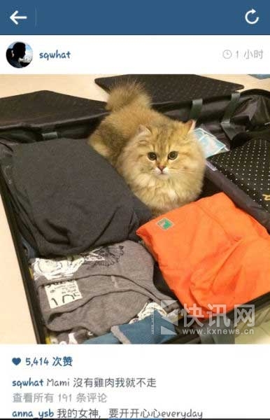 ④ 舒淇最近在 上抱着爱猫、晒出素颜照,意有所指的发文表示:“虽不能陪你过一生,但一定会爱你到一世。”她的PO文被外界猜测是在对绯闻男友冯德伦喊话。(对,一定是我们想歪了。)