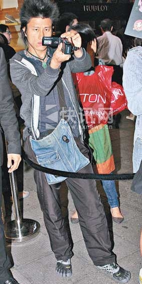 龙心混入张柏芝的粉丝团内,不过部分“芝迷”似乎有点害怕,马上弹开。当记者举机拍他时,龙心马上以摄录机反拍记者,其后又掉转镜头自拍,行为一贯的怪异!张柏芝则风骚的在布景前不停转身,让记者全方位拍摄;由于动作太大她不慎露出贴在领口位置的打底胶纸,她前后停下两分钟给传媒拍照,又向门外粉丝飞吻。问她可有见到龙心?她置若罔闻没有回应。