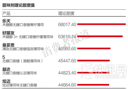 根据中国食品工业协会糖果专业委员会专家认可,综合上述数据记者进行换算,6大口香糖的理论甜度如下: