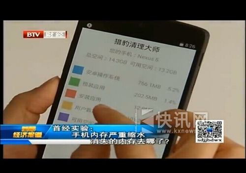 中新网9月26日电 近日,北京卫视报道了人们日常使用的手机存储空间存在惊人潜规则。在节目中,北京卫视联合猎豹移动实验室对市面上主流销售的16G版本手机进行调查,调查发现全部手机都有不同程度的“缺斤少两”现象,平均每款手机都被事先盗走了4.2GB左右的储存空间。