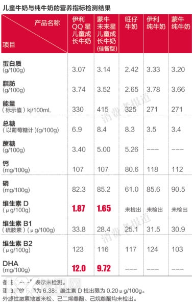 不过,食品工程博士云无心对此表示:“牛奶中本来含有的维生素含量很低,未检出是正常的。但两款儿童奶中的含量远远高于正常含量,应该是添加的。按照标准,在配料表里应该标明。儿童每天需要的维生素D为15微克,这两款儿童奶100克牛奶中含有1-2微克,算是补充维生素D的很好来源。”