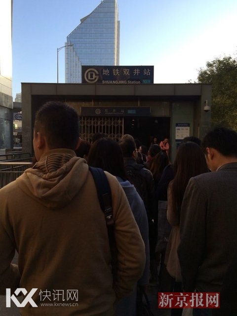 北京地铁方面表示今早在10号线劲松、双井、国贸三个连续站采取了限流措施。根据观察,双井地铁站客流在9时30分左右开始回落。