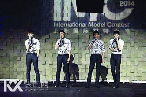 张子轩(左一)演唱大赛主题曲