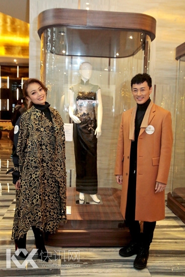 图片二:祖儿与林峯在英皇电影城戏服展览区前合照,背后陈列的是祖儿之前在演唱会穿着的戏服,可谓别具意义。
