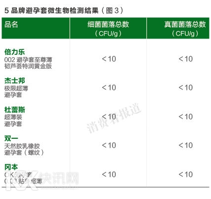 此次本刊还按照GB15979-2002《一次性使用卫生用品卫生标准》,对5品牌避孕套的卫生指标进行了检测。检测结果显示,所有产品的微生物指标都及格。(如图3)