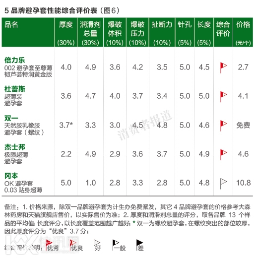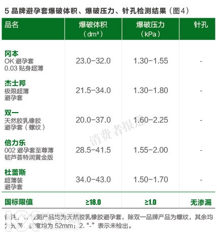 然而过去几年,从各地工商质监的市场抽检情况来看,避孕套的不及格率一直处于较高水平。“安全”避孕,是消费者选择避孕套最看重的一点。为此,《消费者报道》本次避孕套检测除了对厚度、润滑剂指标进行检测外,也对针孔,爆破体积和压力这两个特征指标进行了检测。结果显示,冈本、杜蕾斯、杰士邦、倍力乐和双一等5品牌避孕套都及格。