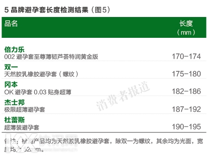 目前市面上的避孕套大部分宽度为52mm,本刊对5款避孕套的长度履盖范围也进行了测试,以供消费者参考。部分品牌有更多尺寸供选择。(如图5)