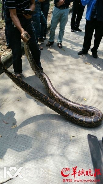 一直以为蛇是喜欢阴冷潮湿的,可这条蟒蛇好像有点特别,喜欢晒太阳,这条两米多长的大蟒蛇在公园后山的石头上大摇大摆的晒太阳,把路过的游客吓坏了,公园管理处的工作人员连忙找抓蛇能手来支援,于是,现实版的农夫与蛇在公园上演了,还好,场面不是惊醒动魄,网友用户5857275327猜测:“此蟒蛇不是野生的!就是家庭宠物。否则没那么温顺”。
