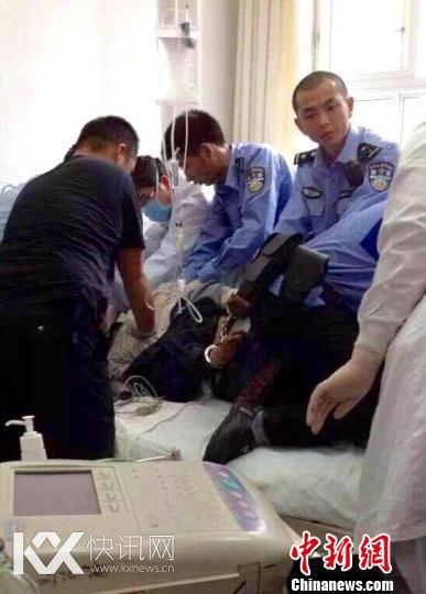 杀人疑犯正在医院抢救。 钟欣 摄