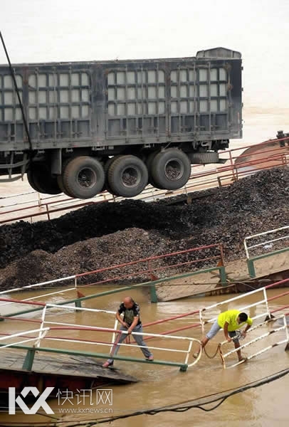 2015年8月1日,济南泺口浮桥南头,一辆拉铁矿渣的大货车由北向南过桥,在上岸时把浮桥一节舟桥压塌落在水里,造成浮桥无法通行。