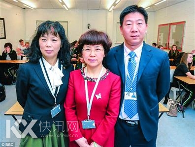 来自南京的李爱云(音)老师(中)、来自西安的自然科学老师杨君(音)(左)以及来自杭州的数学老师邹海连(音)
