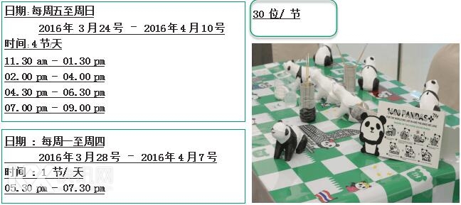 3月24号至4月10号期间,除了可以观展之外,游客还可以参与Central Embassy尚泰领使商场在G层举办的熊猫工坊活动,只需支付700泰铢即可参与由专人指导的熊猫纸模手工制作活动,其乐无穷。