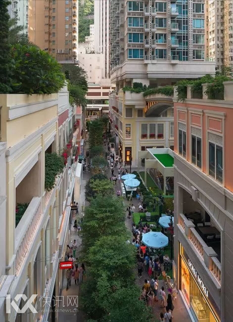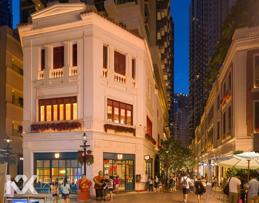沿街商业裙房的连续立面,RLP 将其分段设计,形成类似传统商业街的店铺开间,既恢复利东街商铺林立的街道氛围,又巧妙衔接了皇后大道沿街的历史建筑。商业街立面的设计风格突显香港中西交汇的文化特色,RLP 在欧式三段式建筑基调上加上香港所特有的一些建筑细节,使利东街建筑环境和空间品质大获提升的同时也不失对以往都市空间的记忆。