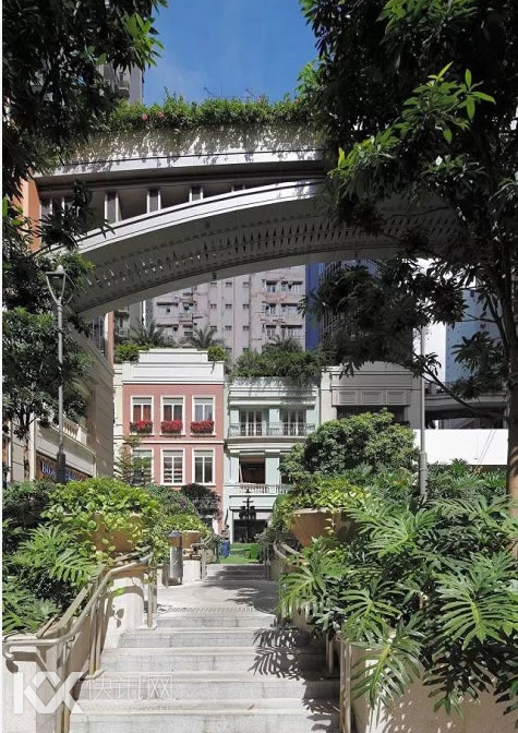 利用建筑的高低、进退,建筑之间的天桥和分隔建筑的小巷,RLP 为项目设计了一个层次丰富、室内室外交融的立体绿化园林,并引入多样化的物种,增加植栽,缓和都市热岛效应。
