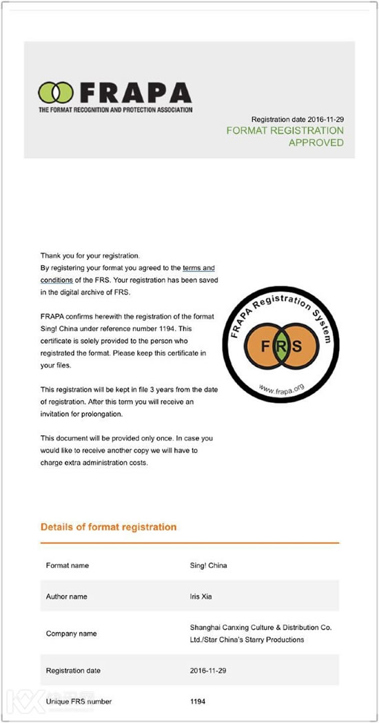 事情起源于上周网络上突然流传的一则假新闻,文中宣称《中国新歌声》因模式涉嫌侵权,曾于去年10月在戛纳电视节被查扣,假新闻的撰写者甚至还附带了一份当时马赛高等法院的调查令作为佐证。短短一天之后,灿星制作就出示多项证据澄清了假新闻。关键证据就是,去年10月,《中国新歌声》根本没有在戛纳推广和销售,实际上直到去年11月底,《中国新歌声》成功获得国际版权协会FRAPA签发的原创模式认证书之后,该节目才会进入模式交易阶段,这就使得所谓的“查扣”谣言不攻自破。而假新闻中所出示的那份法国马赛高等法院的“调查令”,却暴露出《中国新歌声》之所以被黑的幕后原因。