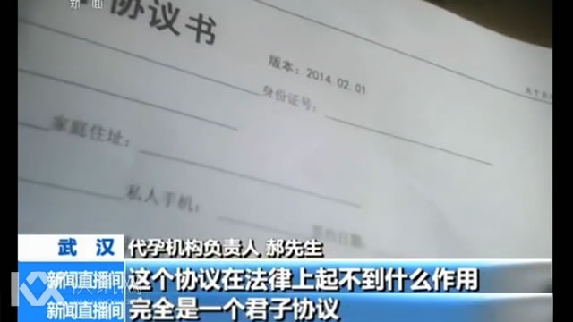 代孕机构负责人郝先生 :这个协议在法律上起不到什么作用,完全是一个“君子协定”。您过来做这件事情,第一肯定是要去多方面了解,信任吧,讲求一个诚信。就是说您这边是需求者,就是想得到一个健康的宝宝,是吧。包括代孕妈妈她做这件事情,也是想顺顺利利把小孩生出来,她拿这部分佣金,咱们都希望这事情有一个好的结果。